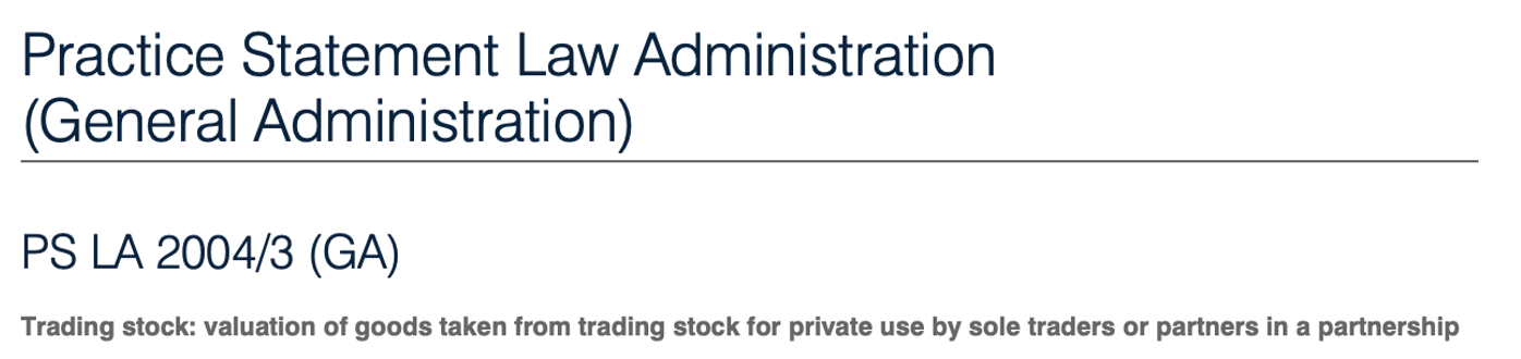 Back in 2004, the Commissioner released a Practice Statement on valuing goods taken from trading stock for private use by sole traders or partners. It states if you take an item of your business’s trading stock for your private use, you need to account for it as if you had sold it and include the value of the item in your business’s assessable income. To do this a taxpayer should keep records of the actual value of goods they take from their trading stock for their own private use and report that amount