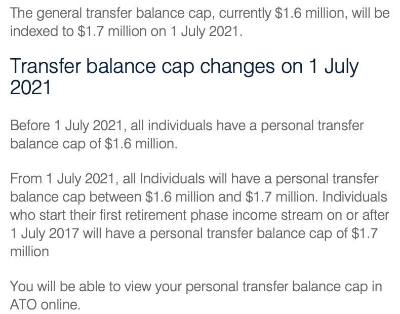 But now the Commissioner has just told us that the “superannuation general transfer balance cap” will increase from $1.6m to $1.7m on 1 July 2021.