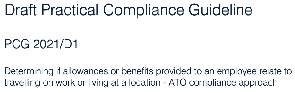 PCG 2021/D1 Determining if allowances or benefits provided to an employee relate to travelling on work or living at a location – ATO compliance approach