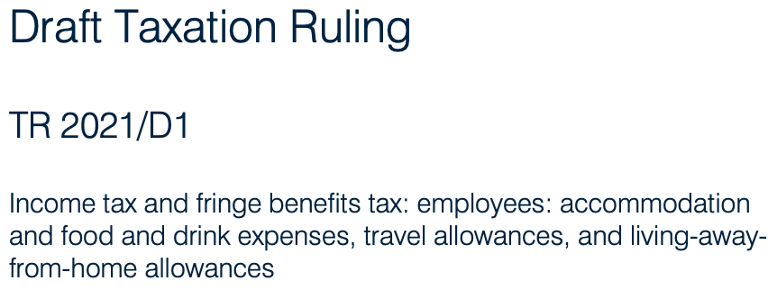 And finally, where an employee is living at a location away from their usual residence, their accommodation and food and drink expenses are living expenses and will not be deductible even if the employee is living at that location due to their employment. This is when they generally breach the 21 day rule in PCG 2021/D1.