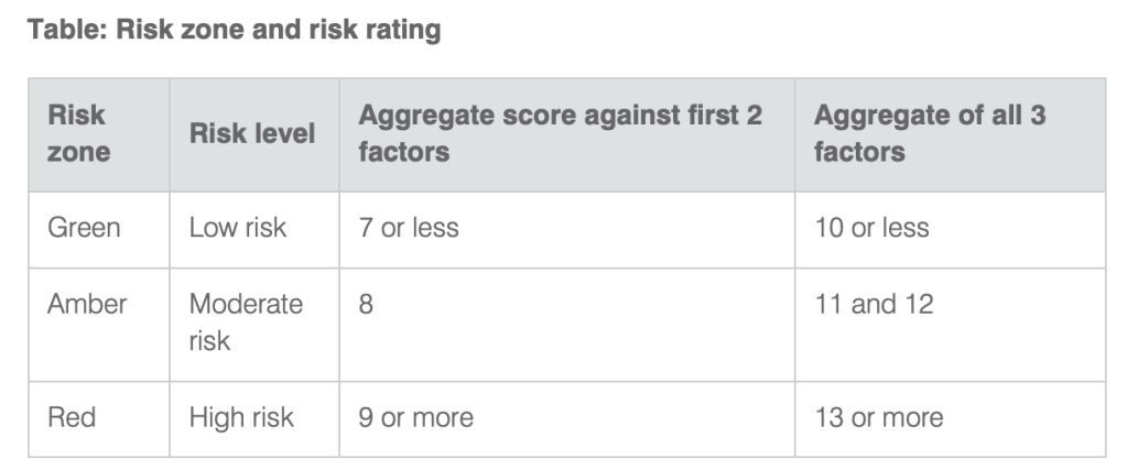 Julie’s total score against the 3 risk assessment factors is 11, which places her arrangement in the moderate risk category.