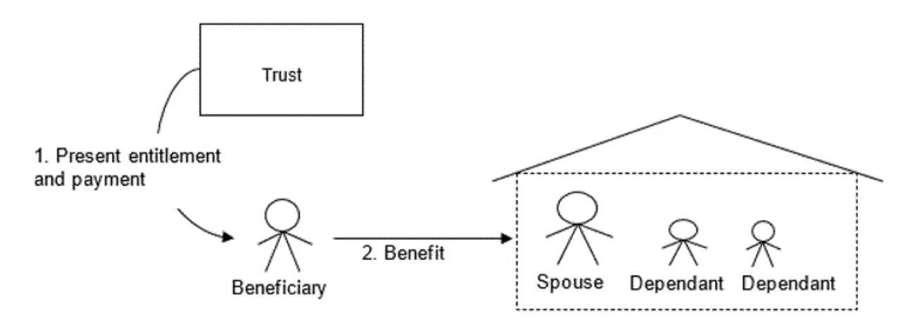 - An individual beneficiary is made presently entitled to income of the trust estate and the funds paid to the beneficiary are mixed with their spouse’s funds (for example, paid to a joint bank account) or used for joint family purposes, and/or benefit a person who is a dependant of the beneficiary…. like these two images