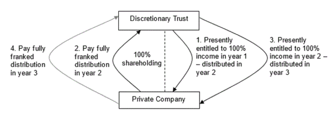 - where the trustee is made entitled to income of another trust that is comprised of franked distributions paid by the beneficiary.