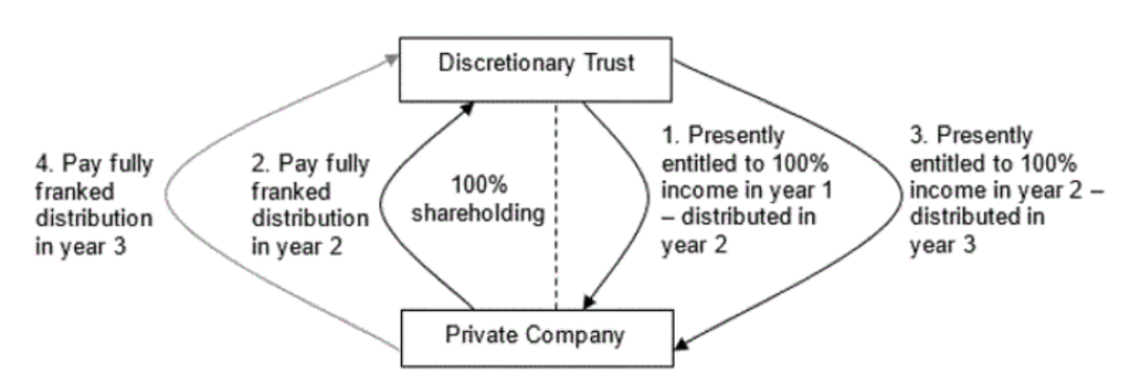 - Arrangements where the presently entitled beneficiary is issued units by the trustee (or related trust) and the amount owed for the units is set-off against the beneficiary’s entitlement
